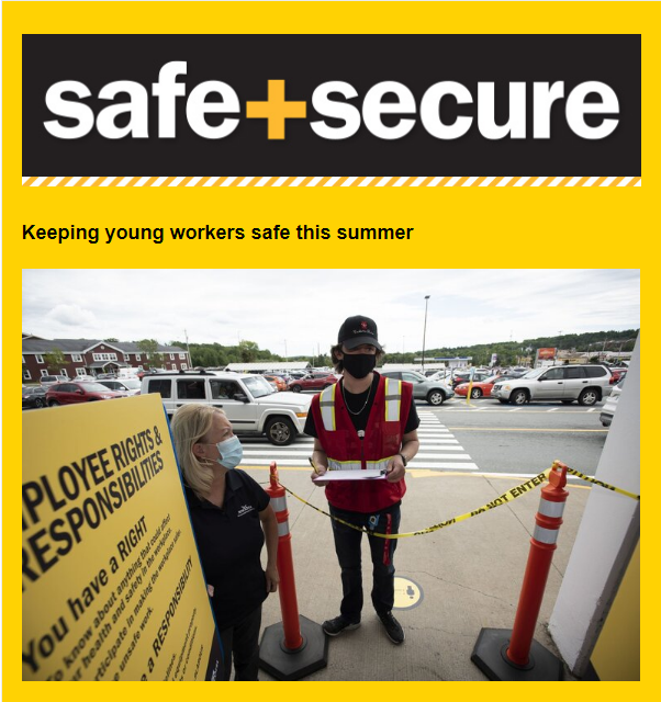 The latest issue of our Safe + Secure e-newsletter is now available, with a special focus on keeping Nova Scotia's young workers safe as more of them enter the workforce in the summer months.