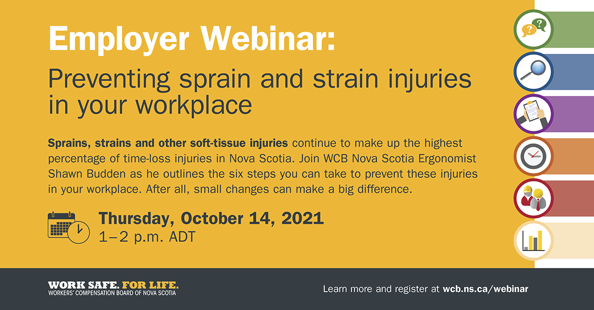 During Global Ergonomics Month, join WCB Nova Scotia’s Ergonomist Shawn Budden as he takes you through the six steps you can take to reduce MSIs in your workplace. He’ll use our MSI Prevention Guide to teach you how to: