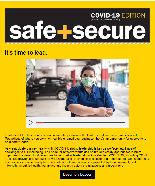 With a special focus on safety leadership, in this issue, we shared our new video on leading through COVID-19, linked to our redesigned Working to Well website with resources to help facilitate safe and timely returns to work, and highlighted our recently updated Risk Mapping Tool to help employers identify hazards before they cause an injury.