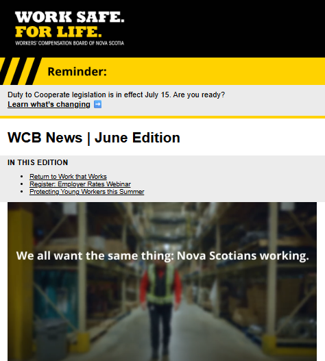 The June 2025 edition of our e-newsletter is now available, with a focus on partnerships that drive better return-to-work outcomes for everyone, an invitation to attend a webinar on rates (how they are set and how you can influence them), and a reminder to protect vulnerable young workers in your workplace.